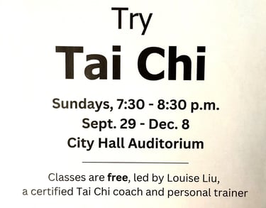Tai Chi Class with Instructor Louise, Wednesdays, 3:30 - 5:00 PM (July - Aug. 2024)